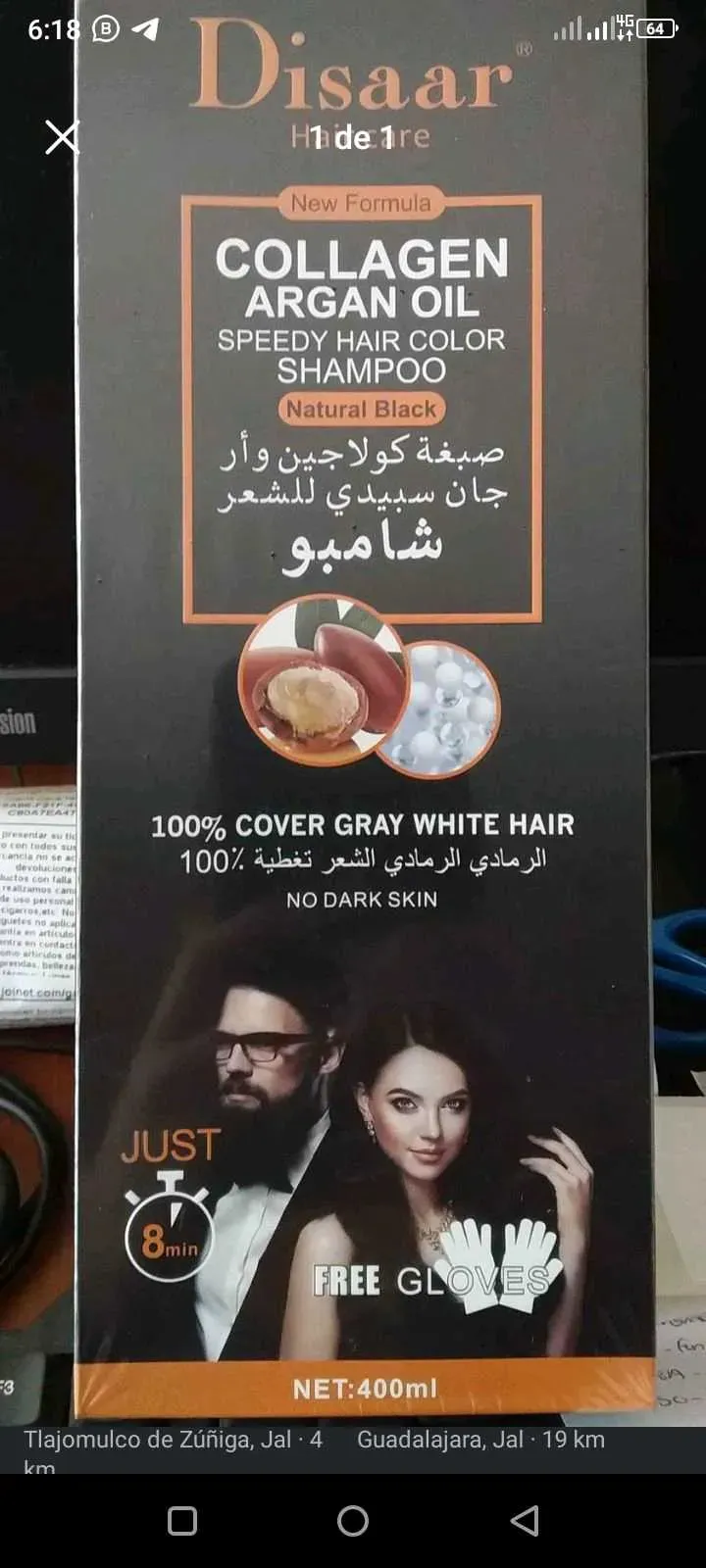 Shampoo tinte, con colágeno y aceite de argan. 😍💯💯💯💯💯 para quitar las canas. 💆🧖❤️🥰
